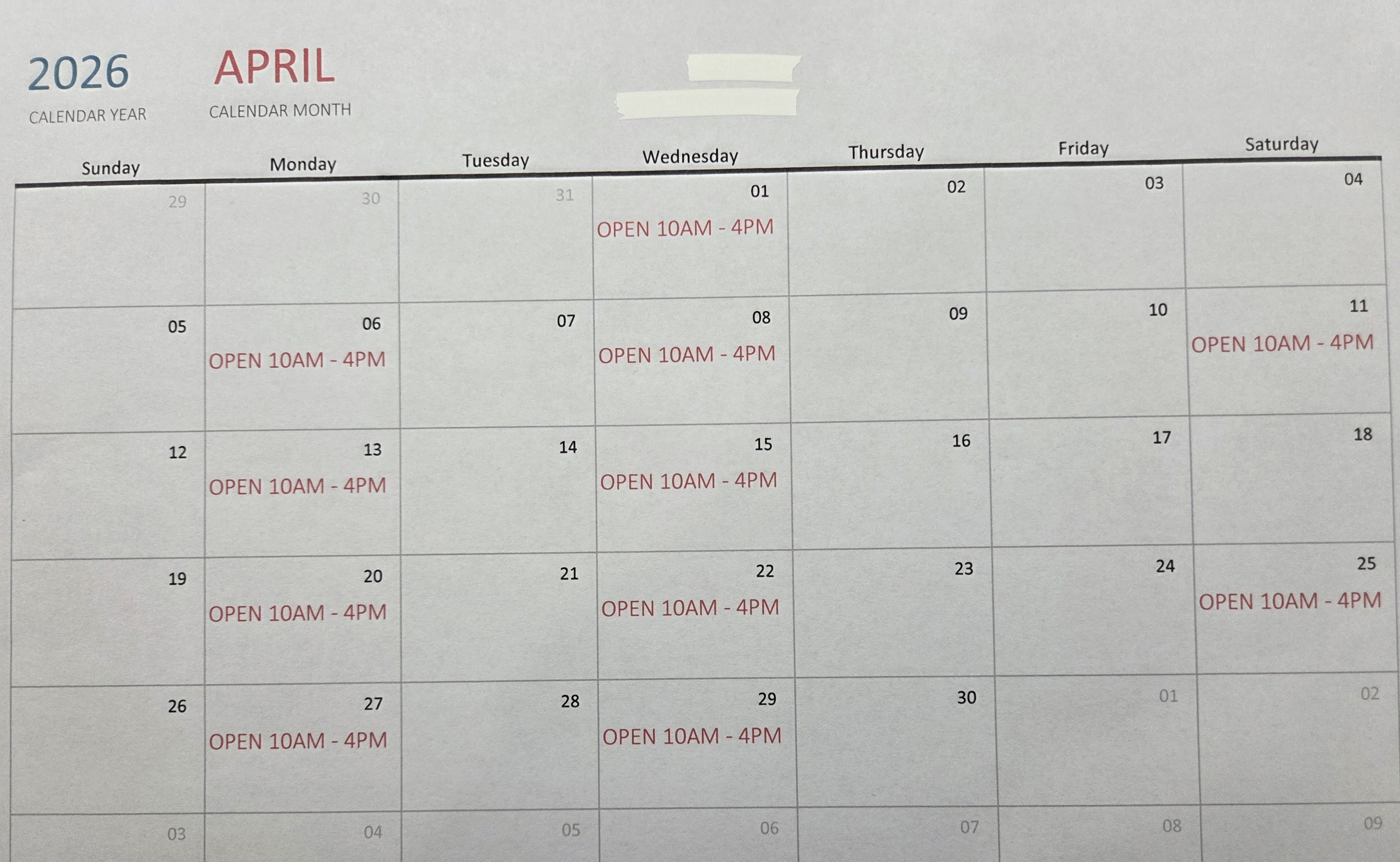 APRIL OPEN DAYS: